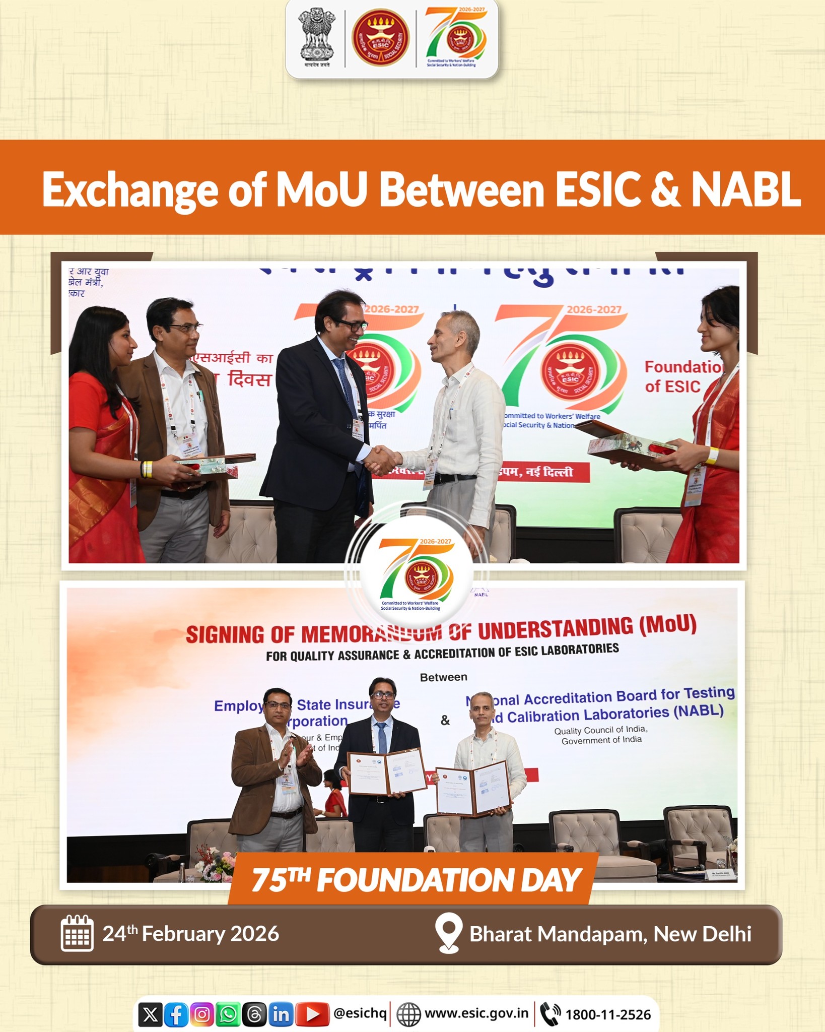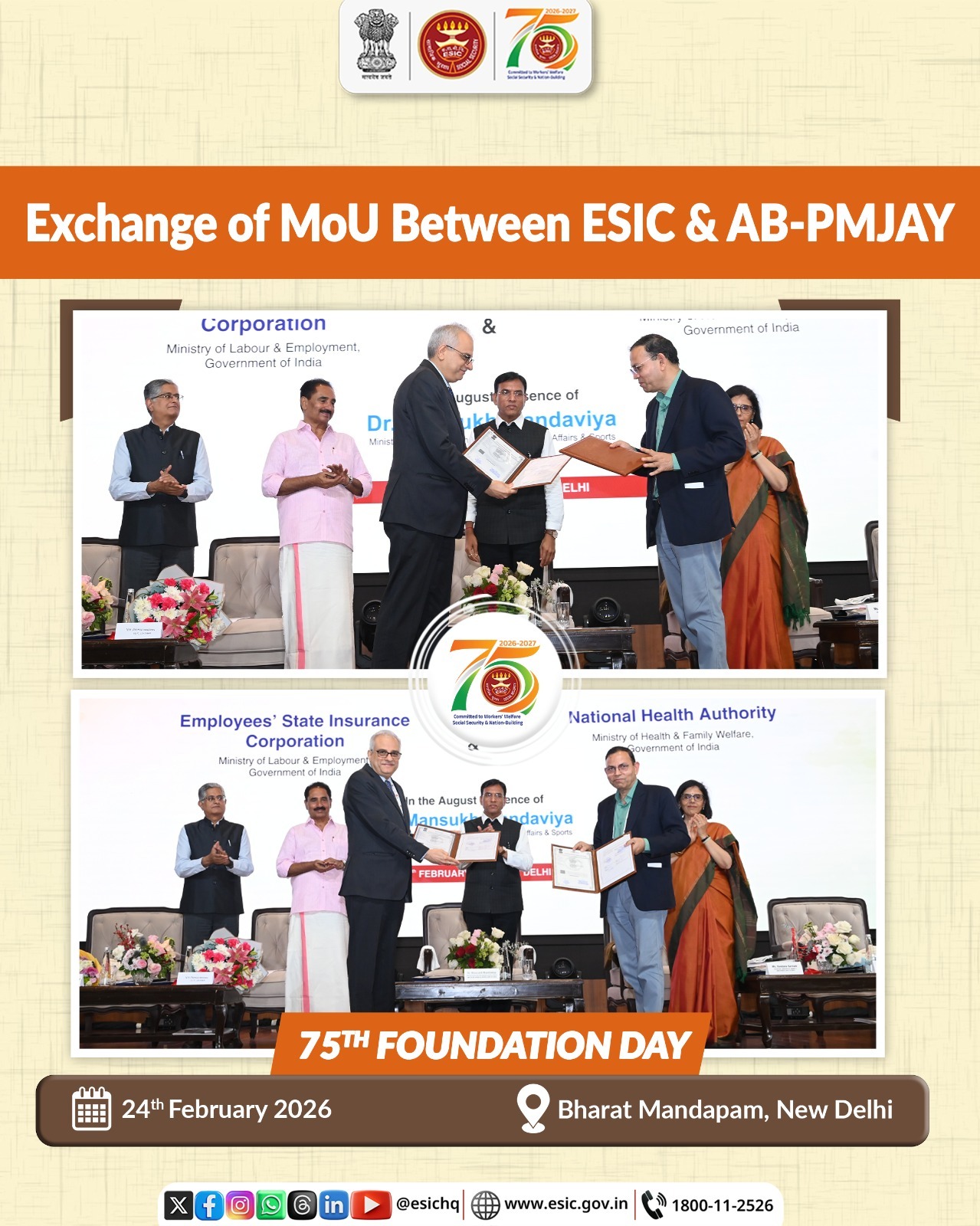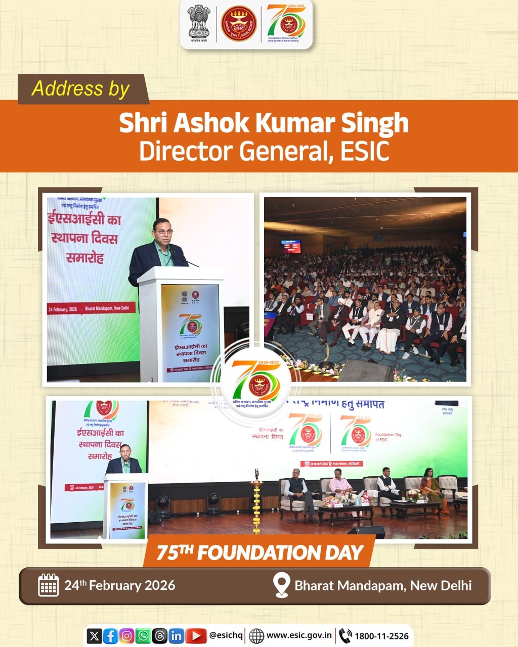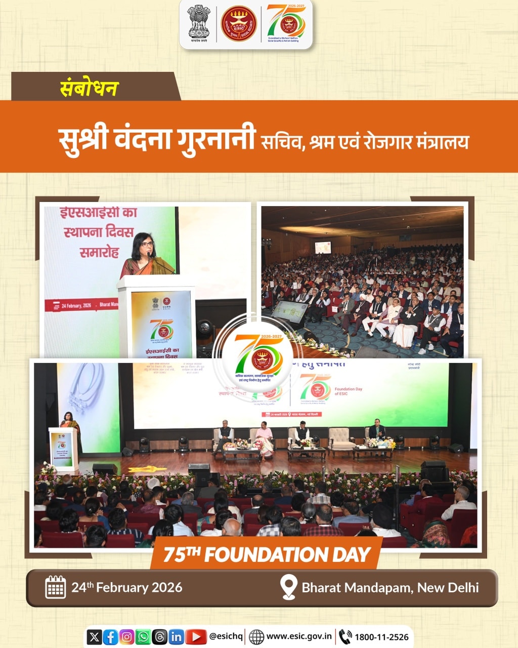 75th Esic Foundation Day Celebration on 24.02.26 at Baharat Mandapam, New Delhi