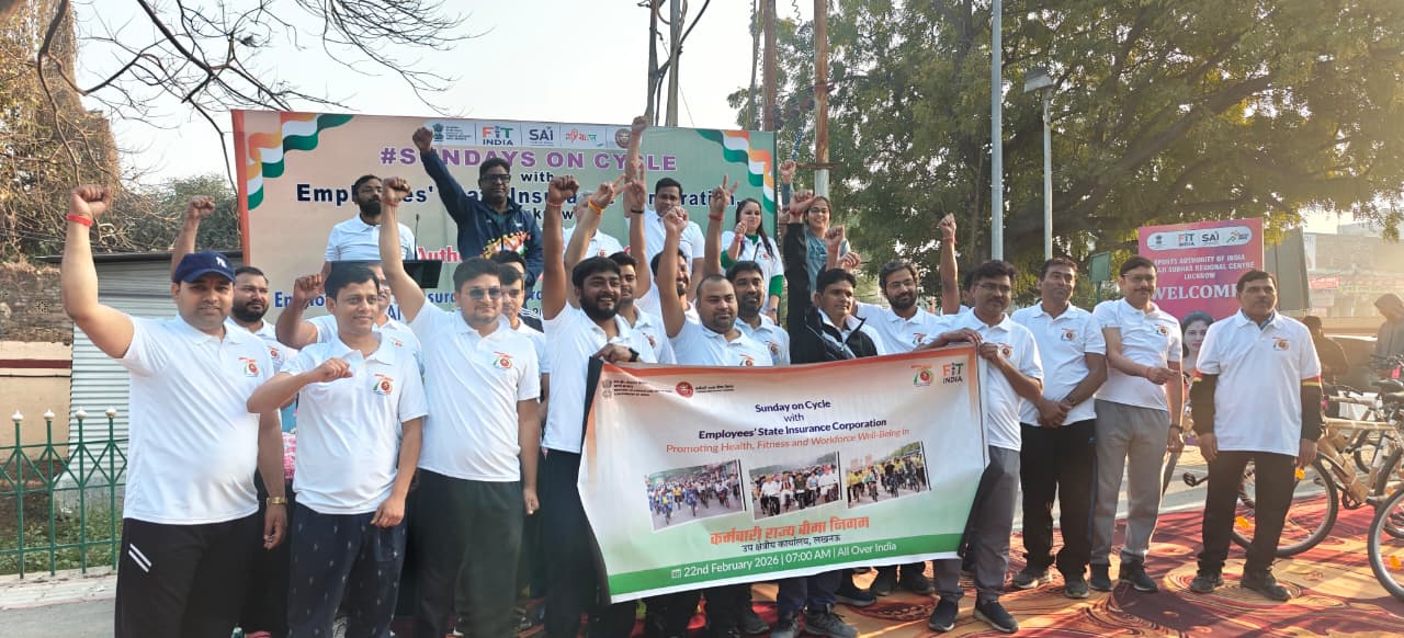 कर्मचारी राज्य बीमा निगम के 75वें स्थापना दिवस के अवसर पर दिनांक 22.02.2026 को उप क्षेत्रीय कार्यालय, लखनऊ एवं भारतीय खेल प्राधिकरण लखनऊ द्वारा आयोजित सन्डे ऑन व्हील्स साइकिलिंग कार्यक्रम