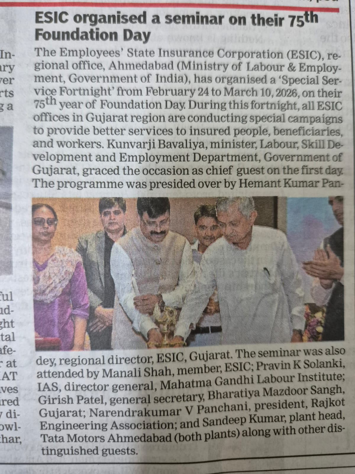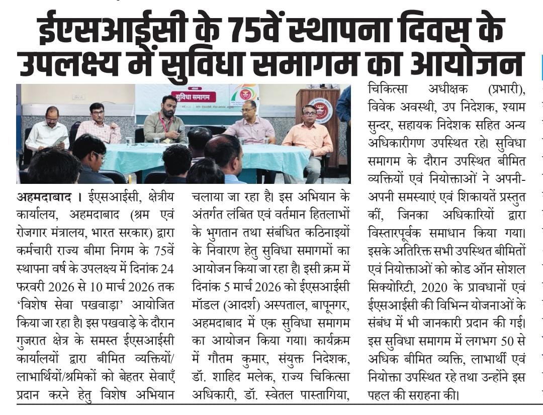 कर्मचारी राज्य बीमा निगम, अहमदाबाद द्वारा क.रा.बी. निगम के 75वें स्थापना दिवस के उपलक्ष्य में आयोजित गतिविधियों के संबंध में प्रेस नोट I size:()
