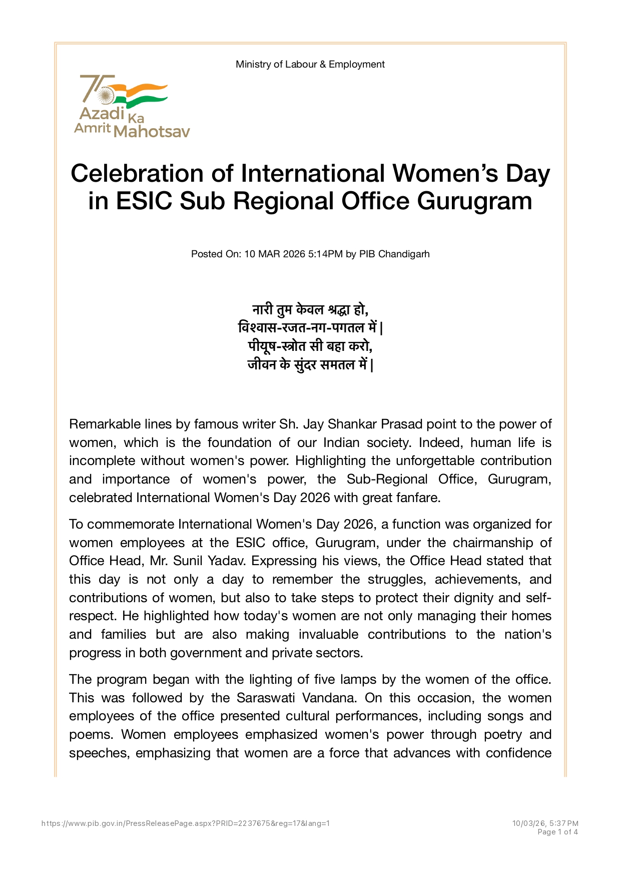 ESIC Celebrates International Women’s Day 2026 and Concludes Nationwide Special Services Fortnight (English) size:(231.91 KB)