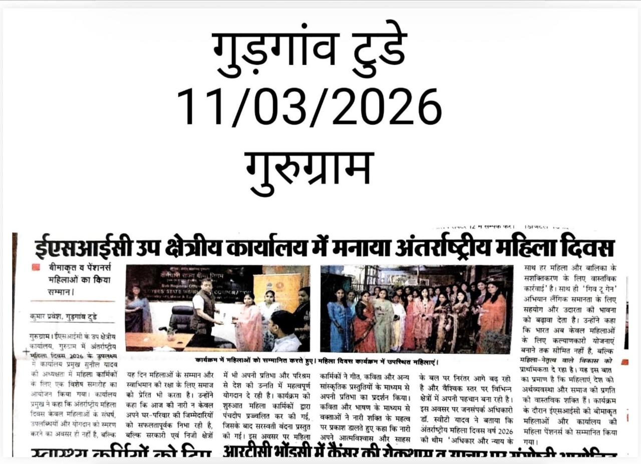 कर्मचारी राज्य बीमा निगम ने अंतर्राष्ट्रीय महिला दिवस 2026 मनाया और राष्ट्रव्यापी 'विशेष सेवा पखवाड़ा' का समापन किया (Hindi) size:(219.02 KB)