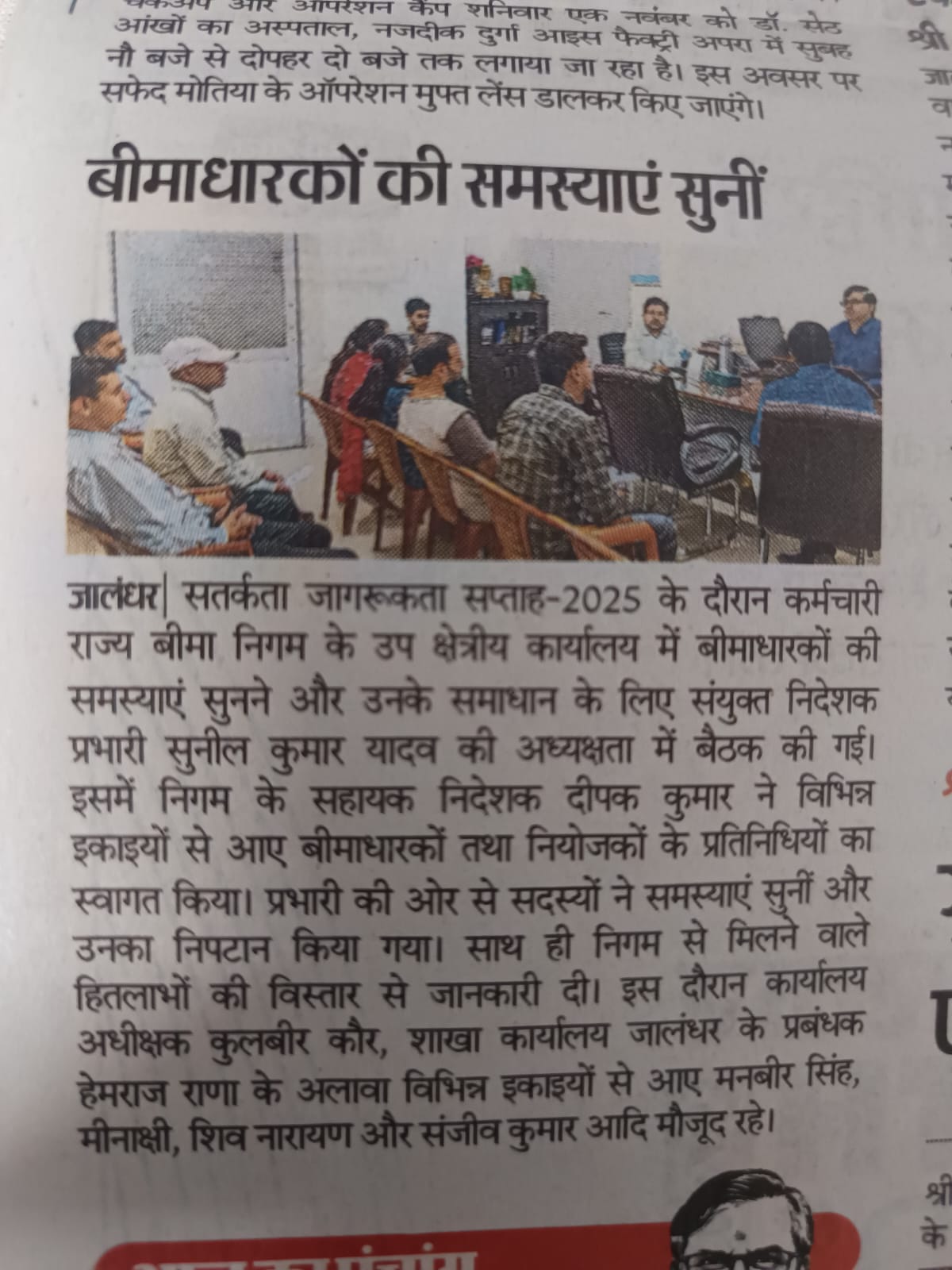 कर्मचारी राज्य बीमा निगम में ‘सुविधा समागम’ का आयोजन (Language- Hindi) size:(719.22 KB)