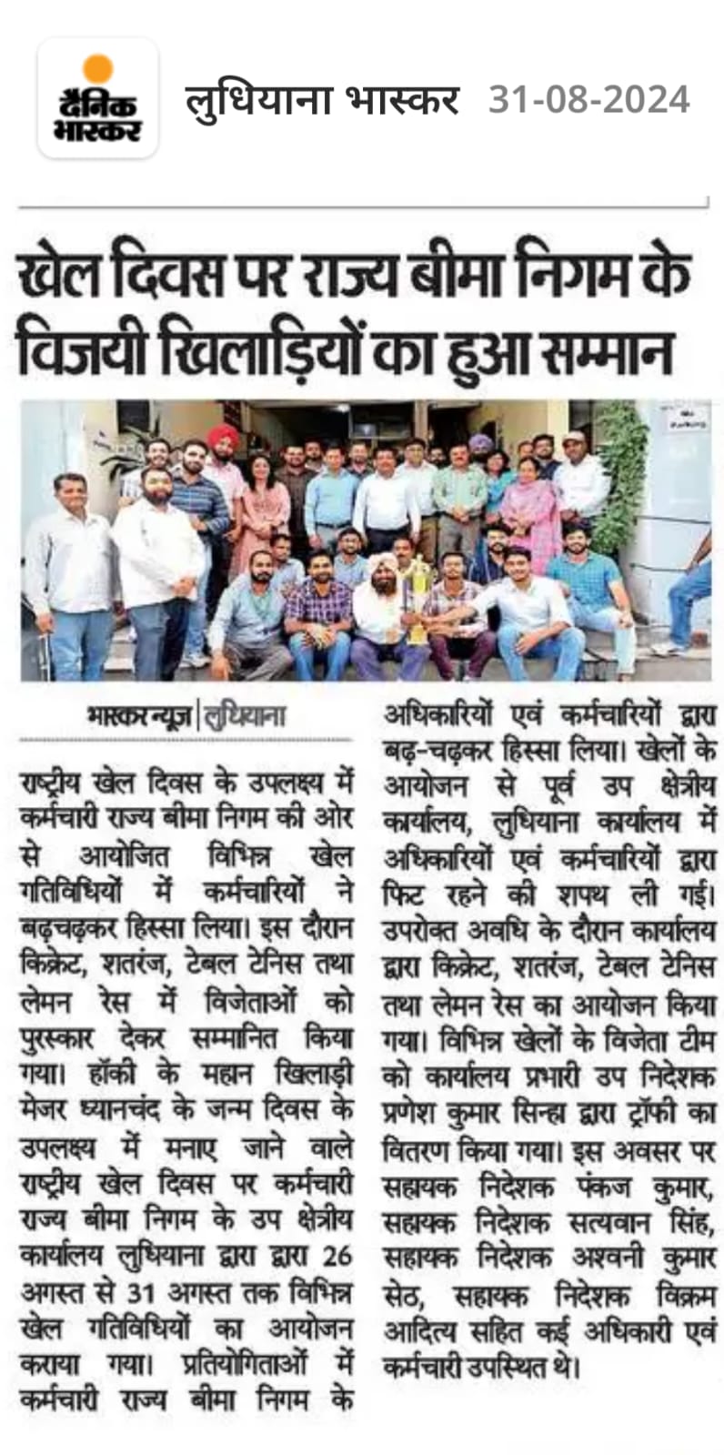 कर्मचारी राज्य बीमा निगम उप क्षेत्रीय कार्यालय, वड़ोदरा द्वारा राष्ट्रीय खेल दिवस का आयोजन किया गया size:()