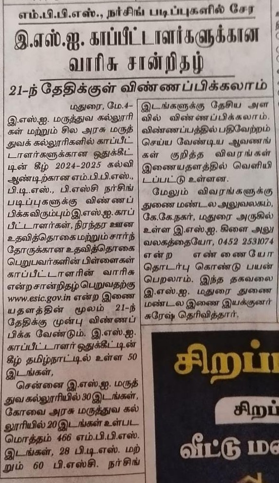 ESIC invites applications for MBBS seats under insured person quota- News size:()