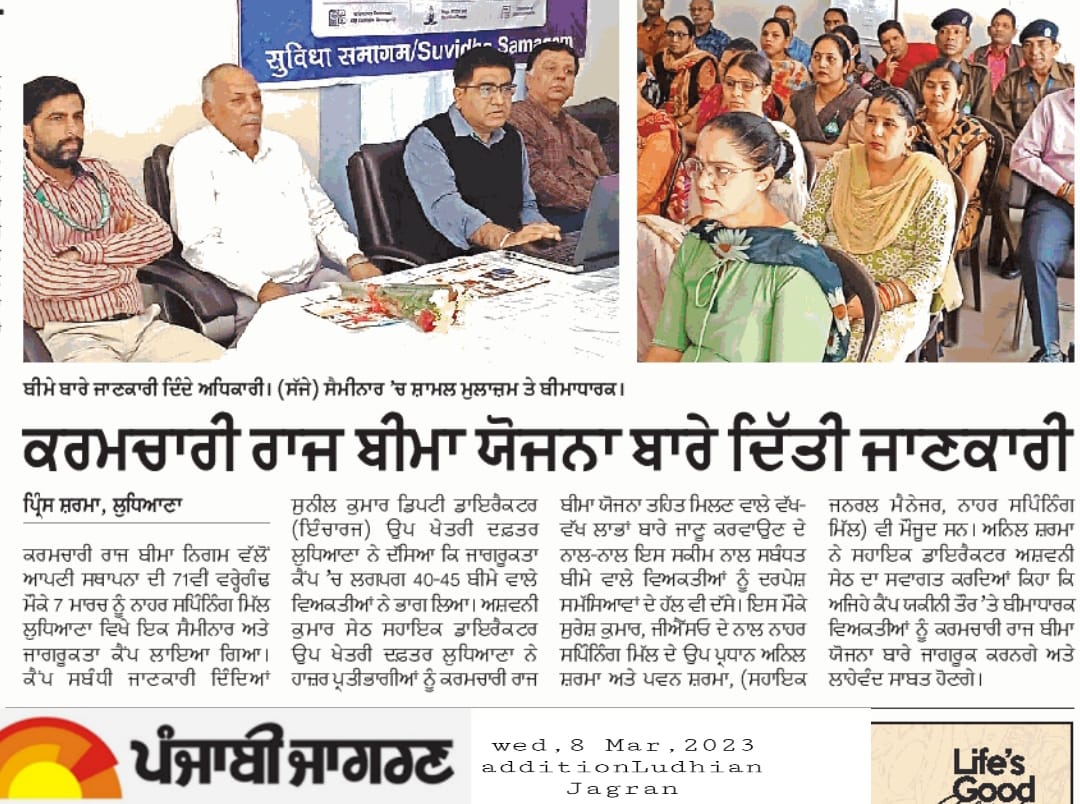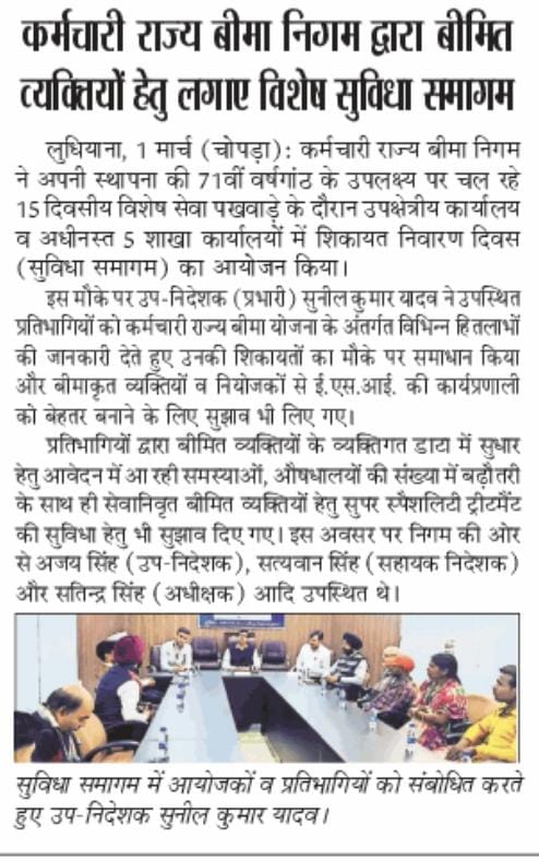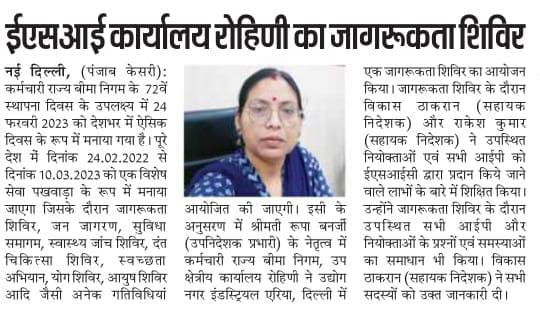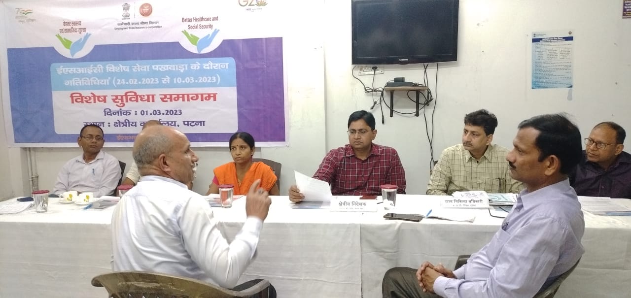 कर्मचारी राज्य बीमा निगम द्वारा विशेष सेवा पखवाड़े के दौरान लगाया गया सेमिनार एवं जागरूकता शिविर। size:()