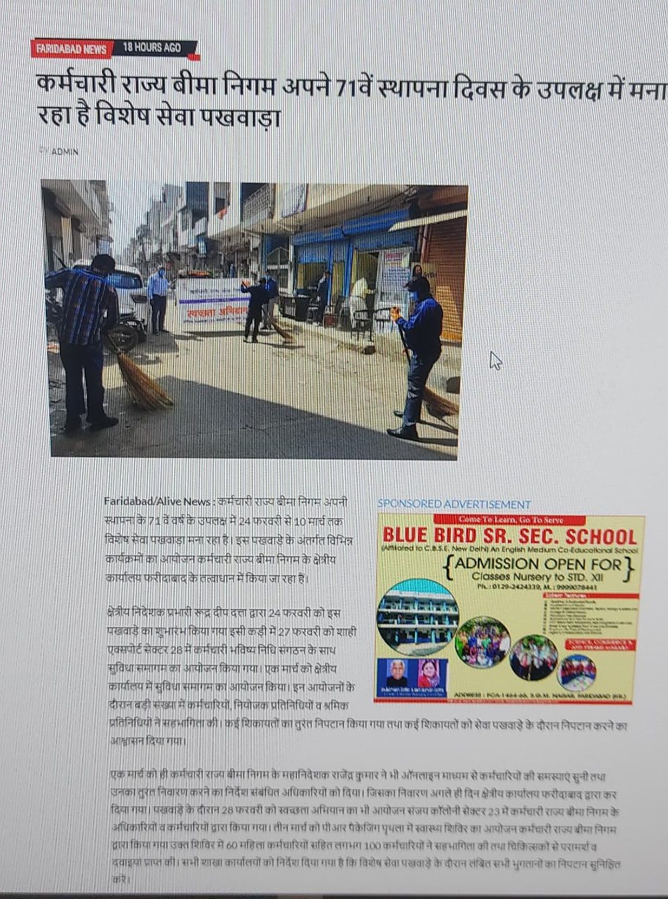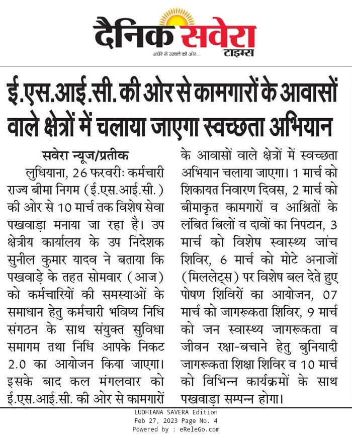 ई.एस.आई.सी. की और से कामगारो के आवासो वाले क्षेत्रों में चलाया गया स्वच्छता अभियान। size:()