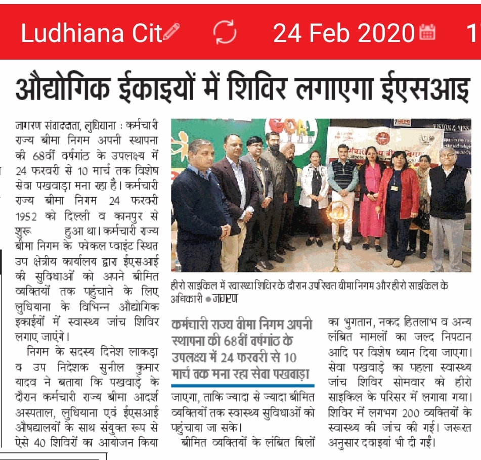 Press Release regarding celebrations of Special Services Fortnight by SRO Ludhiana on 68th foundation day of ESIC size:(680.29 KB)