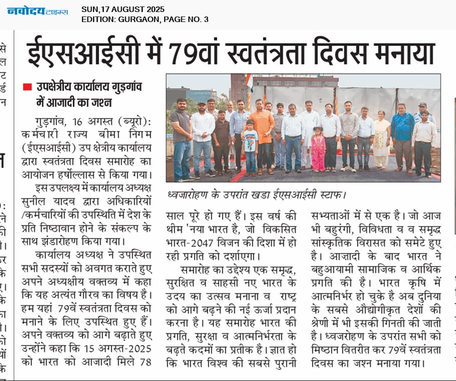 उप क्षेत्रीय कार्यालय गुरुग्राम में मनाया गया 79th स्वंतत्रता दिवस size:(114.97 KB)