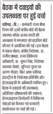 कर्मचारी राज्य बीमा निगम की 33वीं क्षेत्रीय बोर्ड, चंडीगढ़ (यू.टी.) की बैठक का आयोजन दिनांक 26.08.2025 को चंडीगढ़ में किया गया। size:(18.58 KB)