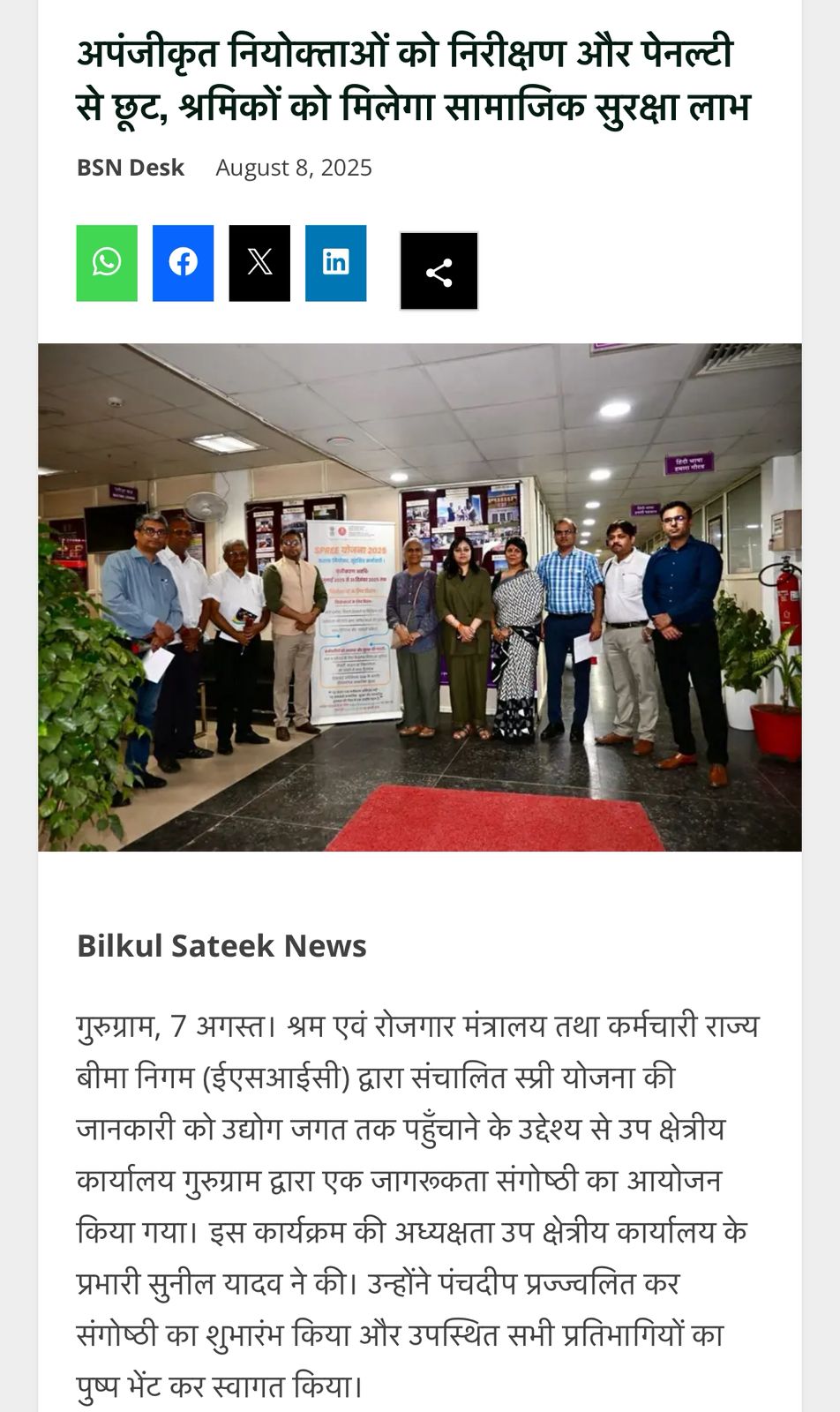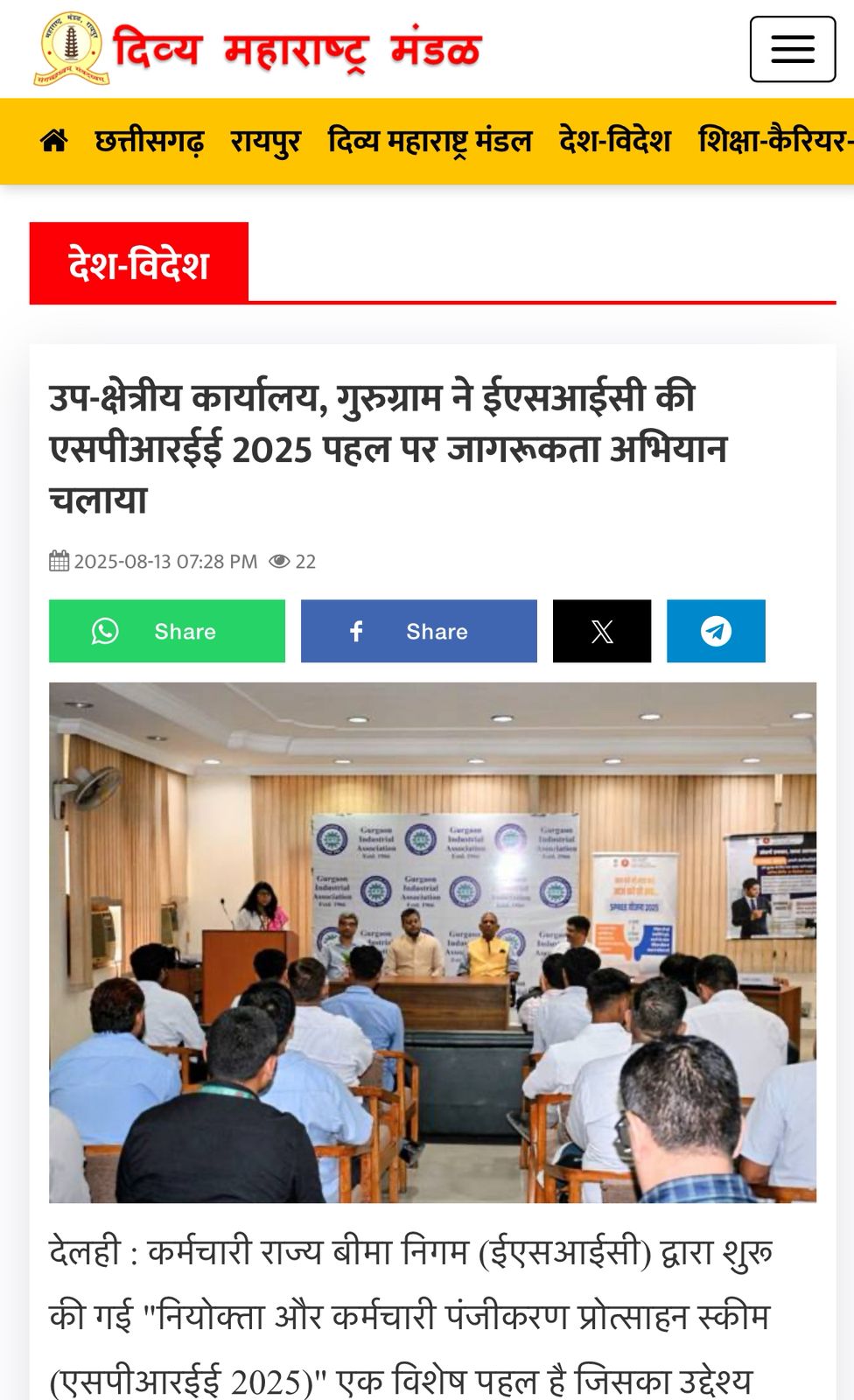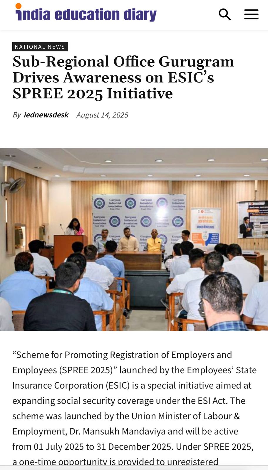 SRO Gurugram drives awareness on ESIC's SPREE-2025 initiative size:(425.45 KB)