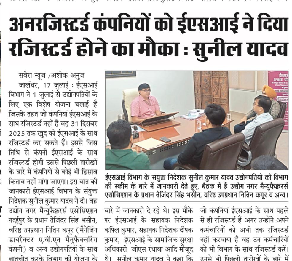 कर्मचारी राज्य बीमा निगम ने सामािजक सुरक्षा कवरेज का विस्तार करने के लिए नियोक्ता और कर्पंमचारी पंजीकरण को बढ़ावा देने की योजना शुरू की size:(89.26 KB)