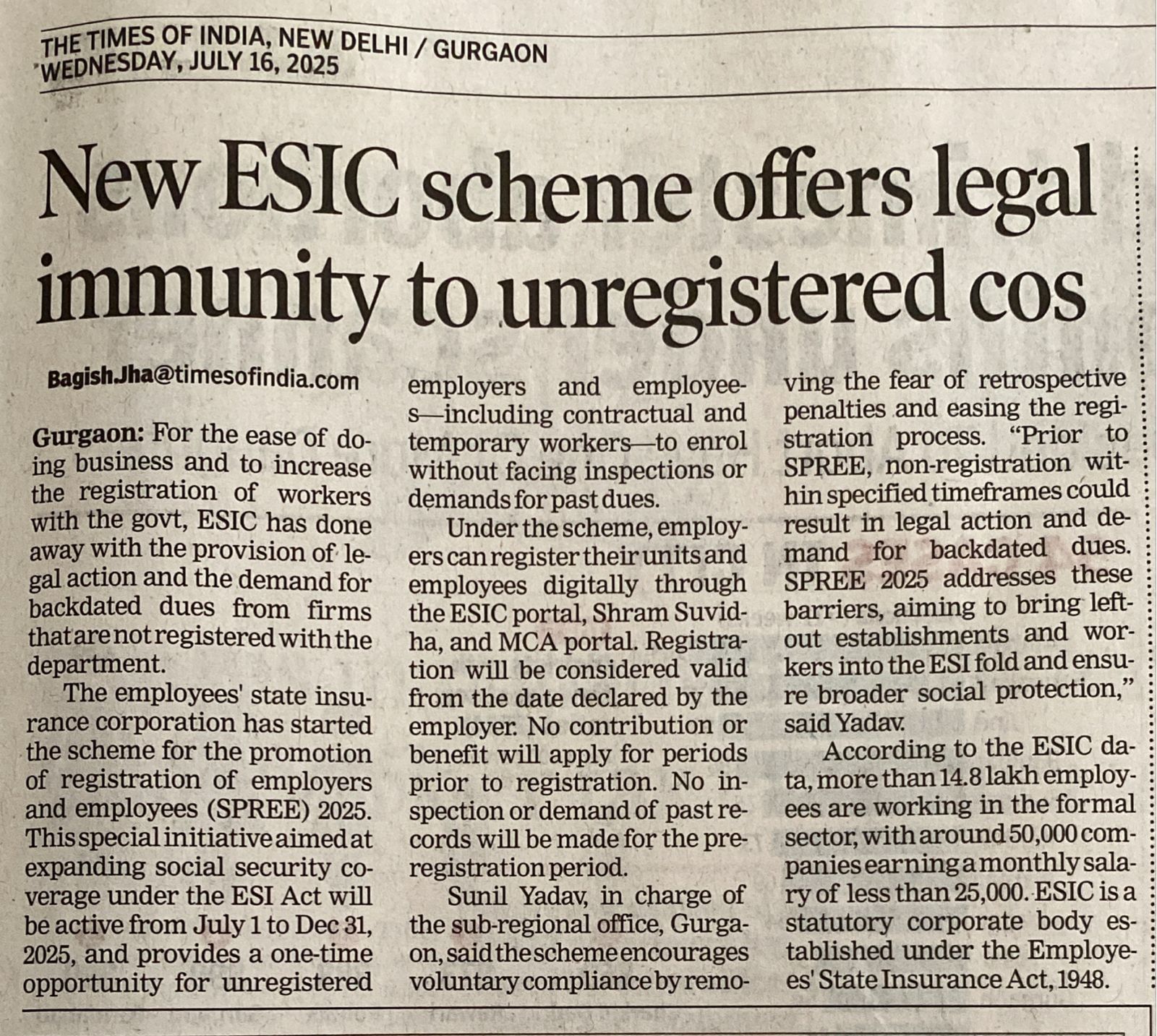 New ESIC Scheme offers legal immunity to unregistered cos size:(255.49 KB)